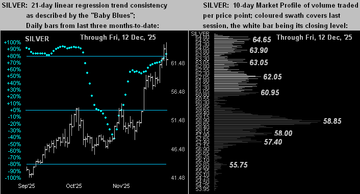 Indeed, Sweet Sister Silver, few took notice of you until just recent weeks. And yet, what an incredible year you’ve had! Like Gold, your settle yesterday at 62.09 is an All-Time Weekly Closing High, which per the above table places you +112% year-to-date, let alone your having also en route achieved an All-Time Intraday High to 65.09, at which price you momentarily were +122% in 2025.