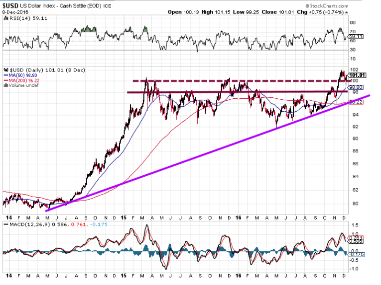 The pattern in the dollar index is extremely bullish. Moreover, it appears destined to trade significantly higher before a top is in place. The odds of the dollar trading on par with the euro (something we stated was possible back in 2011) could become a reality in 2017.