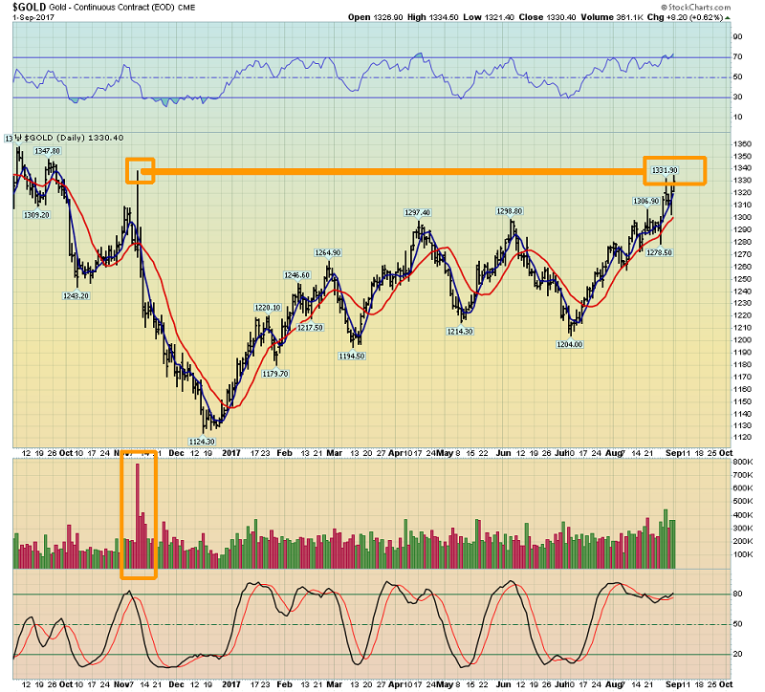 Investors who are nervous that they will miss out on more upside action should buy call options while selling some bullion. Call options are like lottery tickets; if gold surges above $1350 and runs to $1400, the call options will rise in value quite significantly.