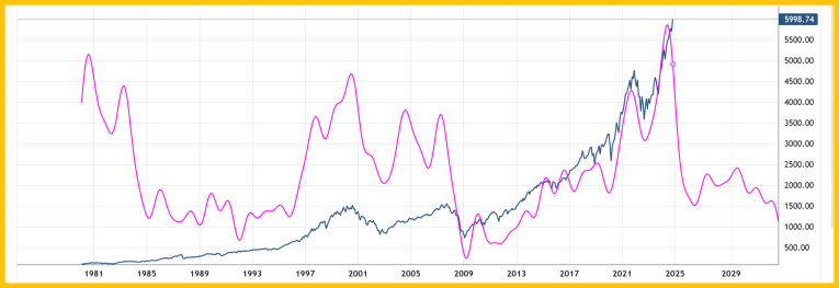 Using a mix of more than a dozen long-term cycles, the SP500 is projected to enter a long-term bear market in 2025.