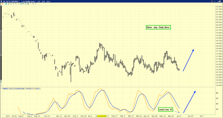 Technically, gold’s daily chart is in “textbook” sync” with seasonality. Note the fabulous position of my 14,7,7 series Stochastics oscillator, at the bottom of the chart.