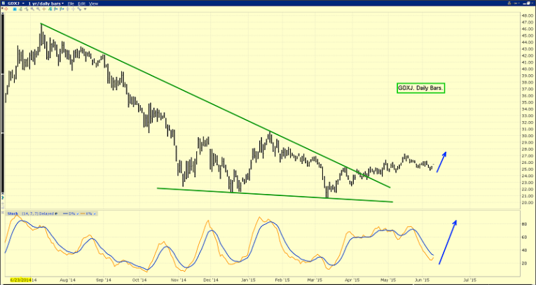 That’s the GDXJ chart. It’s no secret that junior gold and silver stocks are the darling of the Western gold community. Arguably, America was built by men and women in overalls, and destroyed by bankers wearing suits. Junior gold mining companies give investors a chance to relive what made America an empire, and bet against what is probably going to burn it down. From a short term technical perspective, GDXJ looks spectacular. Note the bullish hook appearing on my Stochastics oscillator. Gold stocks swoon going into June, much like America swooned going into the year 1776. Was America a buy in 1776? Are gold stocks a buy in June? The answer to both questions is obviously… yes!