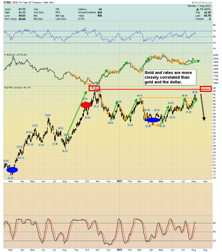 Note that when the ten-year yield was last at 4.33%, gold was near $1600. Now gold is $1930 with yields at almost that same high. This is a tremendous display of strength for the world’s mightiest metal and ultimate currency!