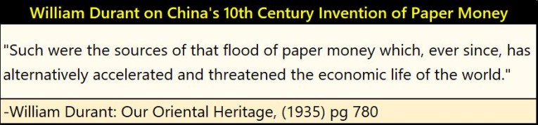Paper money issued by a government was defined by law as a debt, that could be redeemed in real money; coins of precious metal. That is why someone could take a paper $20 bill to a bank before 1933, and demand it be exchanged for a $20 gold piece – it was the law. For good reason it was the law, as monetary history has proven that unbacked paper money issued by a government, is runious to a economy, and even a nation’s culture.