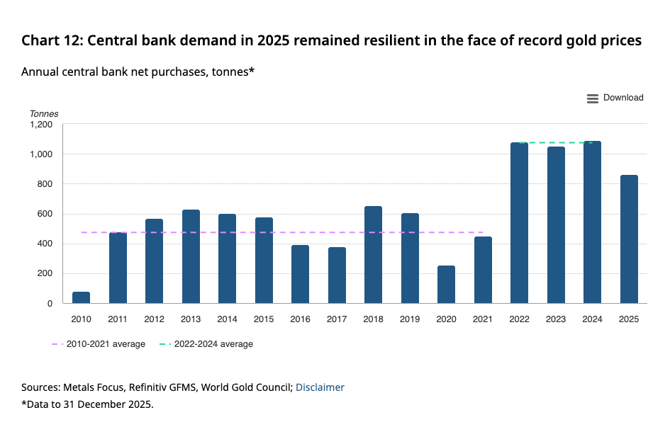“Reported gold buying was somewhat modest through much of 2025 as central banks navigated a rapid rally in prices, which reached multiple record highs during the year. Elevated valuations of gold reserves appeared to prompt a more cautious approach. This highlights that central banks are not insensitive to price dynamics, even as their long-term strategic interest in gold remains firmly intact.”
