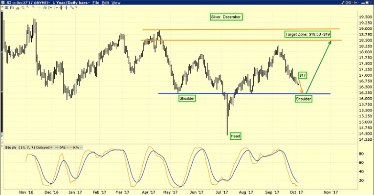 This will occur as China launches its new oil for gold contract, which is optional for oil exporters. I doubt it creates the price parabola that many investors envision, but it should be generally supportive for the price of gold. It should help launch the price up and out of the huge inverse head and shoulders bottom on the long term gold chart. For the time being, the right shouldering process rolls on and investors should be eager accumulators.