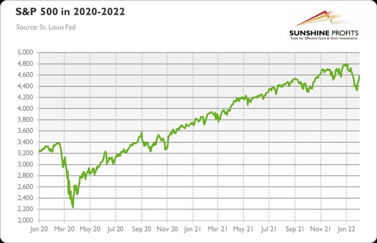 Having said that, investors should remember that what the Fed says it will do and what it ends up doing are often very different. When the Fed says it will be dovish, it will be dovish. But when the Fed says it will be hawkish, it says so. This is because a monetary tightening could be painful for asset valuations and all the debtors, including Uncle Sam. The US stock market already saw significant losses in January. As the chart below shows, the S&P 500 Index lost a few hundred points last month, marking the worst decline since the beginning of the pandemic.