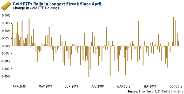 · Central banks globally are stocking up on gold. Poland continues to purchase gold and add to their reserves. The nation’s central bank started buying gold over the summer with a purchase of 9 tons over the course of July and August. Poland’s gold reserves rose to 3.75 million ounces in September, up from 3.61 million ounces a month earlier, representing a third straight month of buying. Kazakhstan also boosted their reserves in September to 10.77 million ounces, up from 10.65 million ounces the month prior. Hungary’s central bank unexpectedly boosted its gold reserves tenfold, purchasing over 28 tons and bringing total holdings to 31.5 tons, citing a need to improve its holdings’ safety.