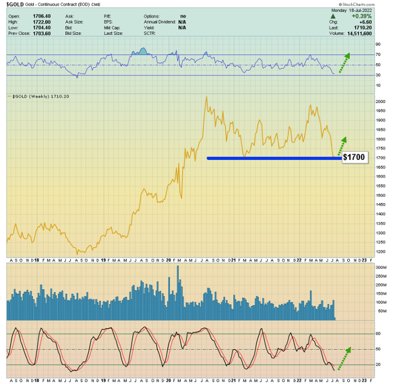 This is the most likely scenario for gold from the $1700-$1675 area: a pause and then a nice rally.