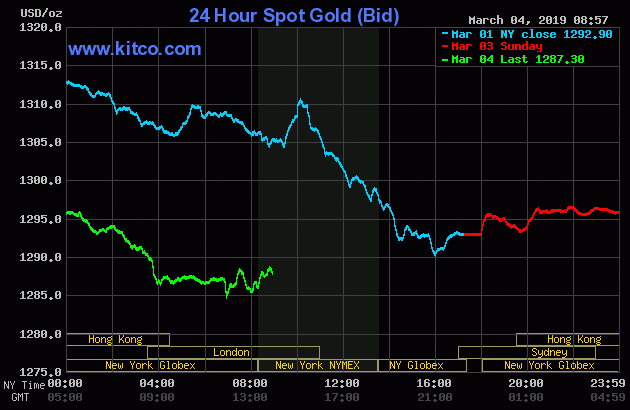 Chart 1: Gold prices from March 1 to March 4, 2019