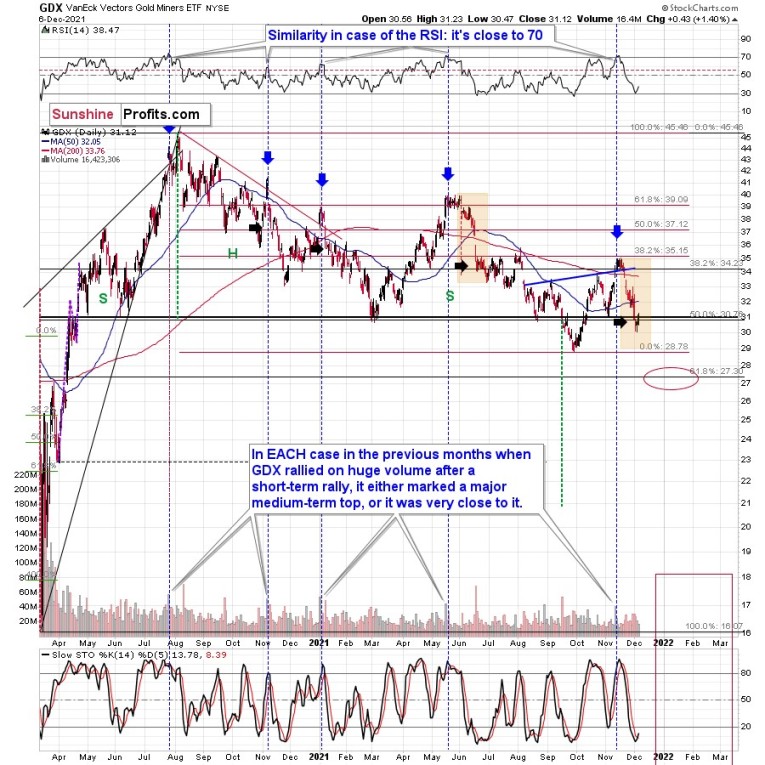 The GDX also moved close to its early-November lows, so let’s zoom in.