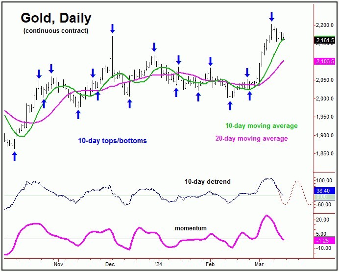 As mentioned in my last article back in February, Gold was in a correction phase - but was into bottoming territory, as represented by a key cycle that we noted at that time. That cycle ended up troughing with the February 14th tag of 1996.40, and with that should be headed higher into April - before another key top attempts to form.