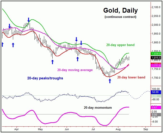 From the comments made in past articles, the last key low for Gold came from the 10, 20 and 34-day cycles, which bottomed out with the July 22nd tag of the 1696.40 figure (December, 2022 contract). From that low, our outlook called for a significant short- term rally for the metal, which we have obviously seen.
