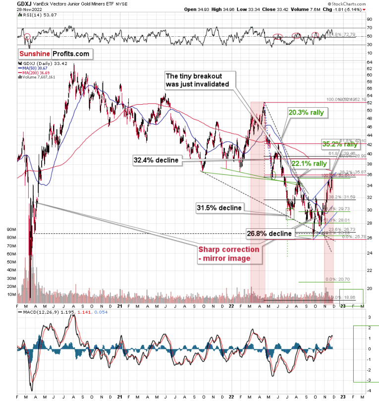 Consequently, it seems that the end of the rally is near. This is likely to have very bearish implications for junior mining stocks.