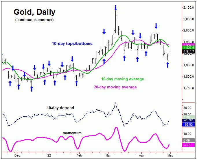 With the action seen into Thursday/Friday, the probabilities now favor the 10 and 20-day cycles to have bottomed with the decline into the 1870.90 swing low - and with that are heading higher into the new trading week.