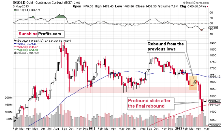History rhymes, so this time, the decline could be sharper than the rally as well. And since the rally took just two weeks… It looks like the next week or two might be very interesting for gold investors/traders. And bearish.