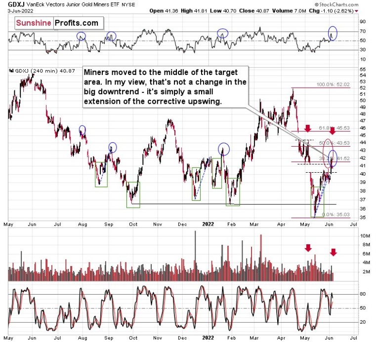 The price of the GDXJ ETF – a proxy for junior miners – moved sharply higher on Thursday, and this got many people excited. High volume confirms that. It’s natural for most investors and traders to view rallies as bullish, but let’s keep in mind that most traders tend to lose money… It’s not that simple. After all, the best shorting opportunities are at the tops, which – by definition – can only be formed after a rally.