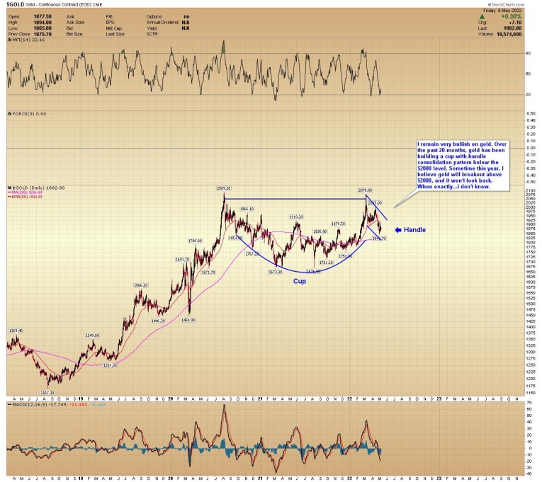 I remain very bullish on gold. Over the past 20-months, gold has been building a cup-with-handle consolidation pattern below the $2000 level. Sometime this year, I believe gold will breakout above $2000, and it won't look back. When exactly...I don't know.