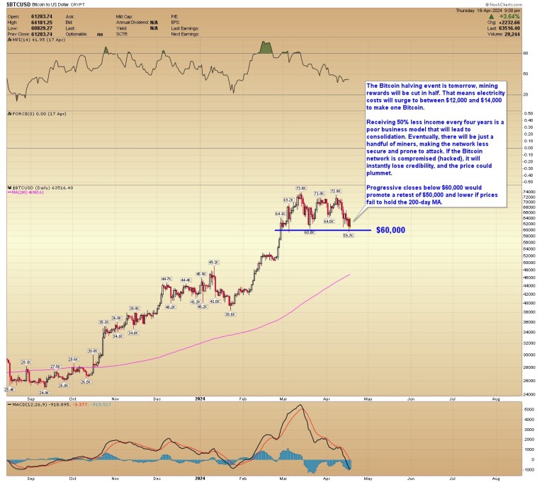 The Bitcoin halving has arrived, prices must hold critical support near $60,000 to prevent a larger ‘profit-taking’ breakdown.