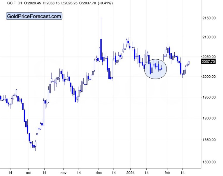 The price of the yellow metal has indeed moved higher, and it erased the post-CPI daily slide. It formed a local bottom close to its previous 2024 lows. However, the size of the current rally is actually similar to what we saw shortly after the first 2024 low. Back in mid-January, gold price jumped to more or less the same price levels that we have right now, only to then decline to a new (slightly lower) low in the following days.
