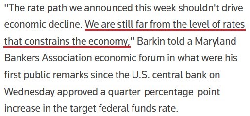 “The FOMC has already made a profound shift in the past six months with its forward guidance on the path of the federal funds rate and the balance sheet, and I believe the SEP we just released is sending a strong signal that further reinforces our commitment to achieving our inflation target. The first hike we announced this week demonstrates that we will follow through on our guidance with action.”