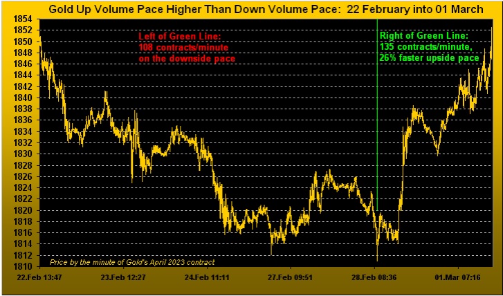 Thus Gold's upside volume pace bettered that of the downside pace by +26%. How many times over these many years have we stated that -- unlike for other markets -- Gold tends to rise faster than it falls. And the Gold-Getters "get it". Encore, voilà: