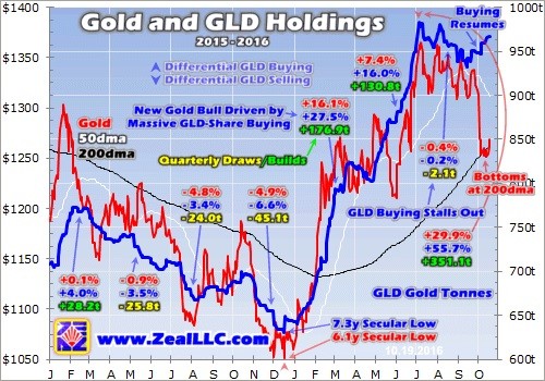 Thus the forces that drove gold’s high consolidation in Q3’16 followed by early-October’s plunge have already reversed. Speculators’ vexing near-record gold-futures selling overhang has finally just been eradicated, leaving them positioned to be aggressive buyers again. And investors’ mid-year break from gold buying that stalled out this young bull appears to be over, as the critical GLD builds are resuming.