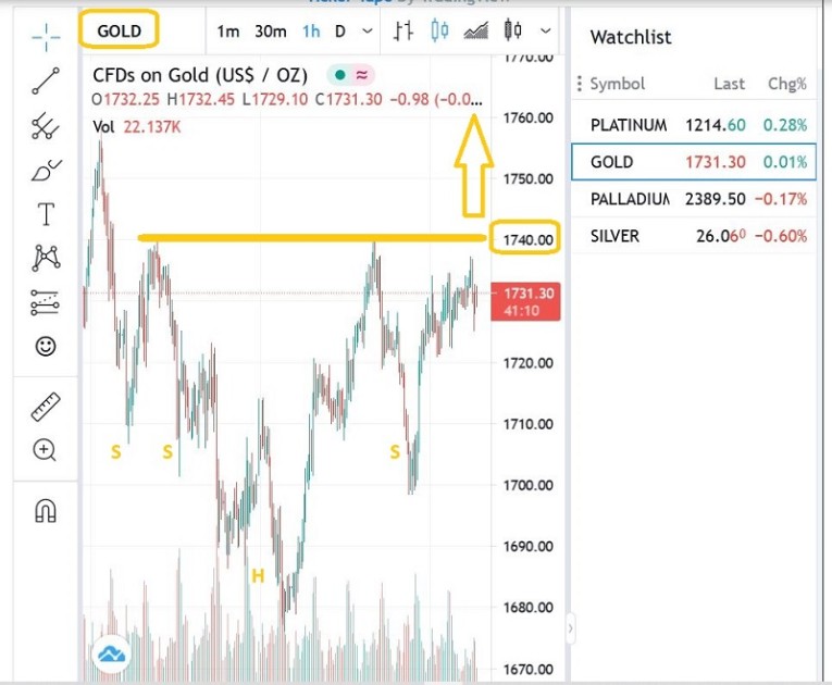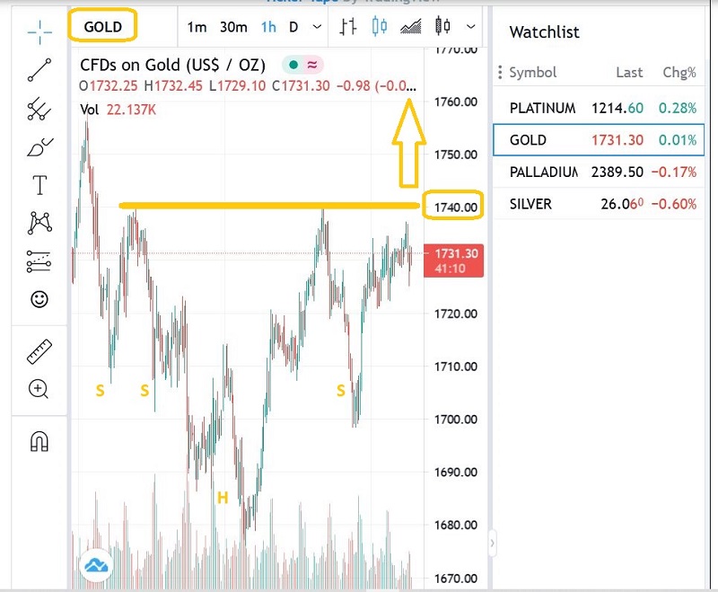 It will be the Fed that gives a breakout above the $1740 neckline a green or amber light.