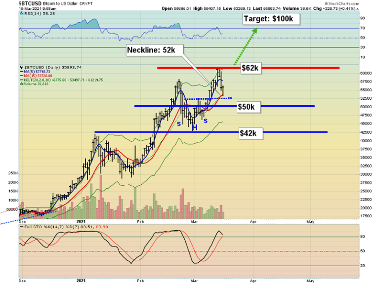 The short-term gold chart.An exciting inverse H&S bottom pattern is in play.