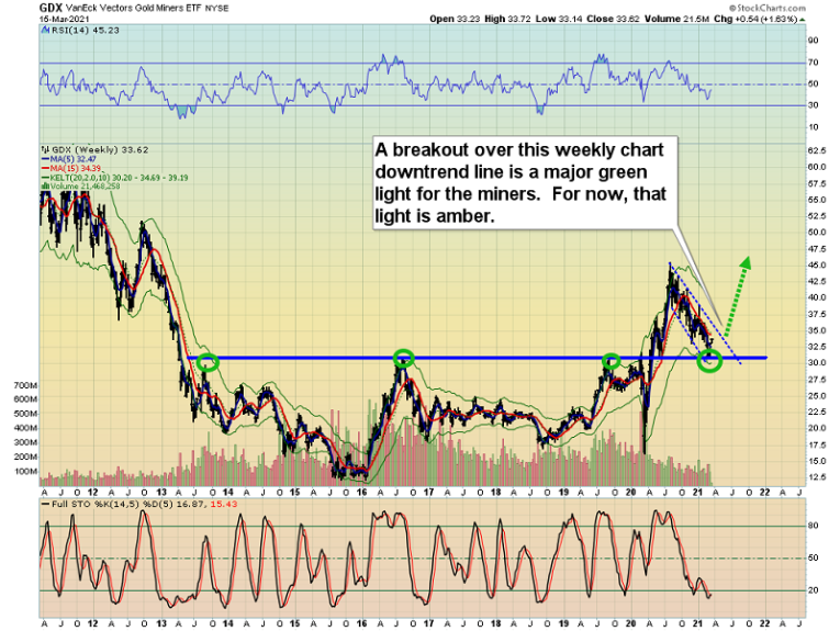 A look at the gold miners via GDX, the GDX daily chart.