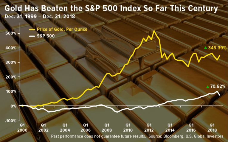 What might surprise you is that the precious metal has also beaten the market for the century, 345.39 percent versus 70.62 percent, since December 31, 1999.