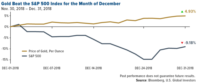 Global uncertainty made gold a holiday winner for investors seeking a relatively safe haven. U.S. stocks just logged their worst year since 2008—their worst December since 1931—as fears over global trade, ballooning debt, the end of accommodative central bank policy and a U.S. government shutdown unsettled investors. Against this backdrop, the price of gold rallied late in 2018, reversing a trend of negative returns and weak investor demand that prevailed for most of the year.