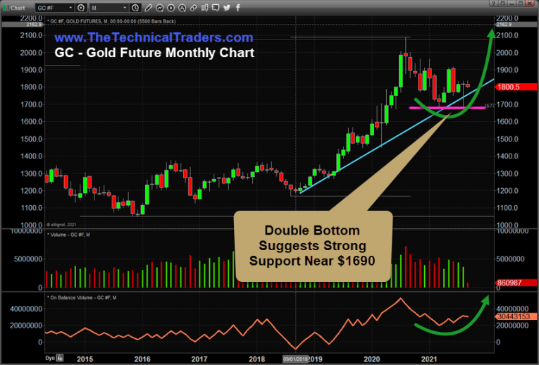 Additionally, we wanted to highlight this Gold Monthly chart pattern that suggests a strong upside price channel and a Double-Bottom continue to confirm a very strong potential for an upside price rally in Gold. The CYAN upward sloping price channel suggests Gold will find a strong support near $1765 and the Double-Bottom suggests Gold has already confirmed a strong support level near $1695.