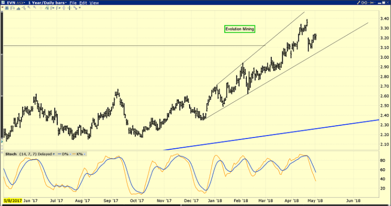 I have a long-term target of $100 a share for Evolution. Investors can be comfortable paying as much as $10 for this fabulous company. In the $5 to $3 area, I’m an eager buyer on every 25cents dip and an eager seller of a third of what I buy on rallies that carry the stock 50cents higher than my buy price.