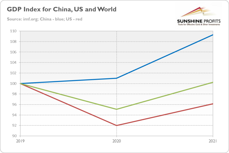 Indeed, as the chart below shows, the U.S. GDP will not return next year to the pre-pandemic level. It will happen in 2022 or maybe even in 2023. So, please forget about the V-shaped recovery, especially since that even these projections may be too optimistic.