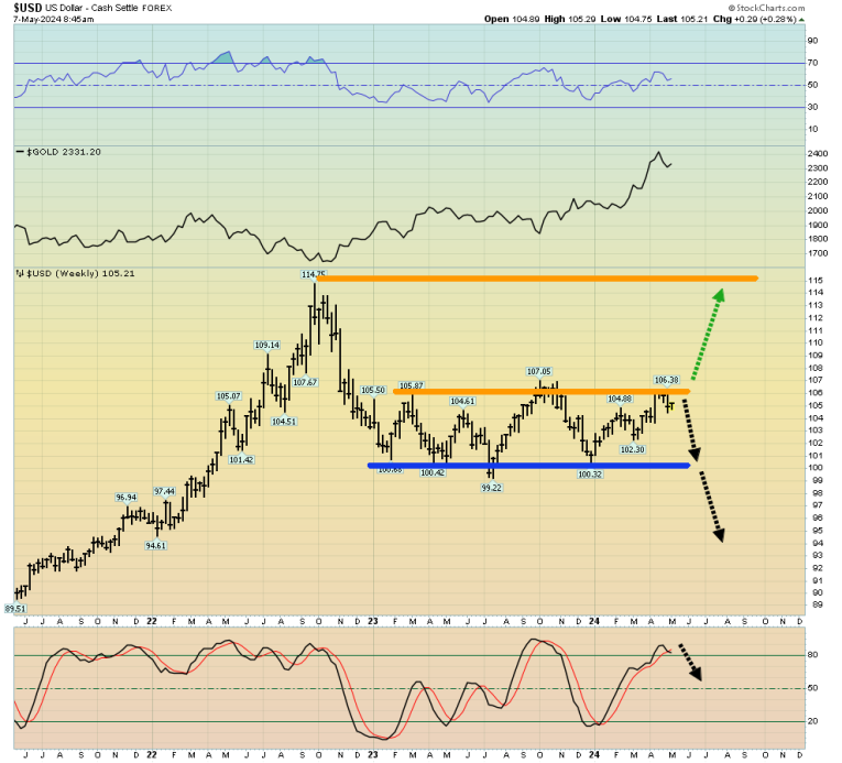The miners? Well, as gold arrived at the $2400 area, I suggested a “pause with grace” was in order for the mining stocks, and that’s exactly what has transpired.