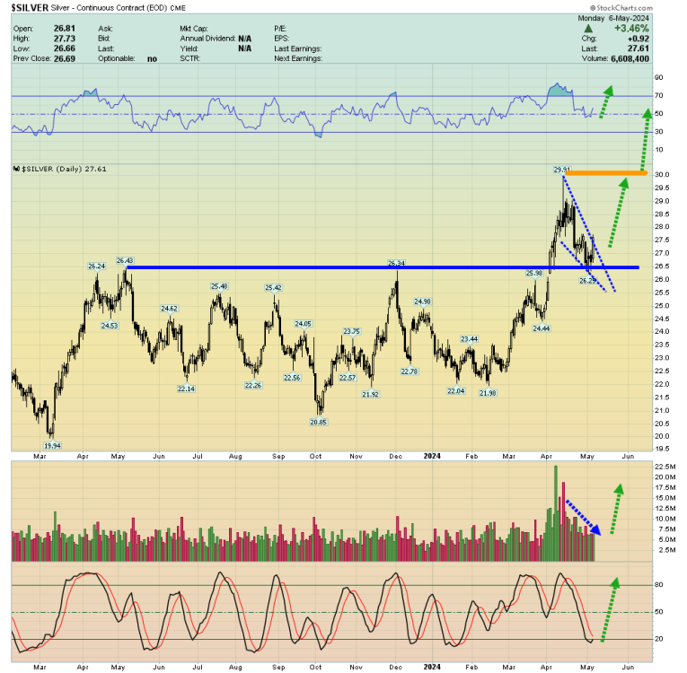 Silver? It looks even more enticing than gold! For a look at the daily chart: