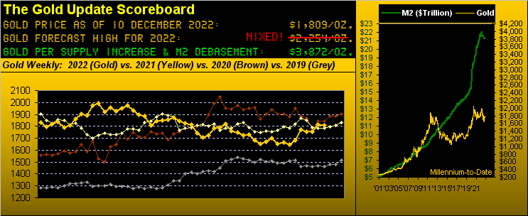 ■ Across the past six weeks, the price of Gold has risen from as low as 1618 (03 November) to as high as 1823 (05 December) -- what with those Happy +15 points of contract premium that we cited a week ago -- is an all-in gain of +12.6%, (or without the premium +11.7%);