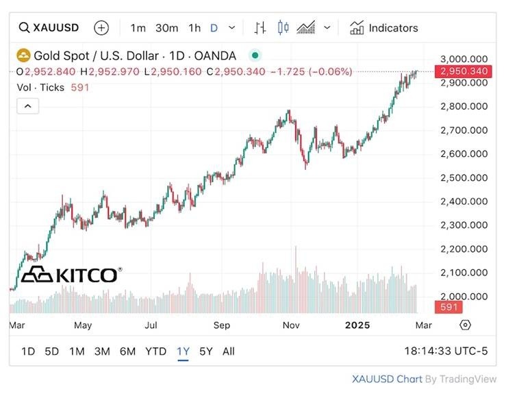 Gold came within $50 of $3,000 an ounce on Monday, Feb. 24, notching an incredible 11th record high in 2025.