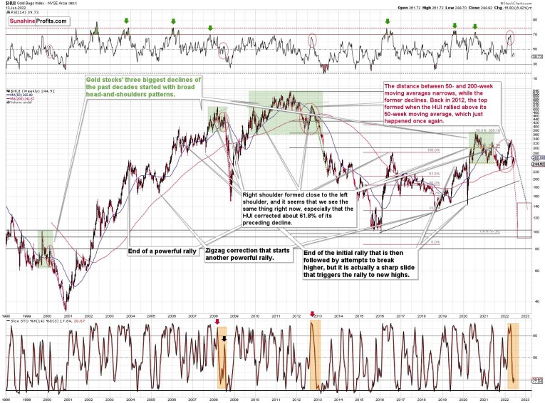 The next interest rate decision is this Wednesday, and it’s probably going to be very interesting. I wouldn’t be surprised if we saw a rate hike by more than 0.5% - for example by 0.75%. This might be enough to send a message to the market that they are serious about the inflation and have positive political implications. Whether that happens or not, the following conference will likely aim to rebuild investors’ confidence in the Fed. It might or might not work with regard to confidence, but it should be enough to trigger declines in the markets (including PMs) – after all that’s how hawkish surprises work.