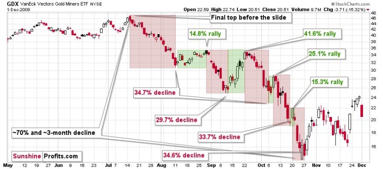First, let me emphasize that gold stocks are declining similarly to how they did in 2008.