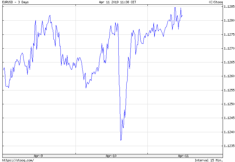 Chart 1: EUR/USD exchange rate from April 9 to April 11, 2019