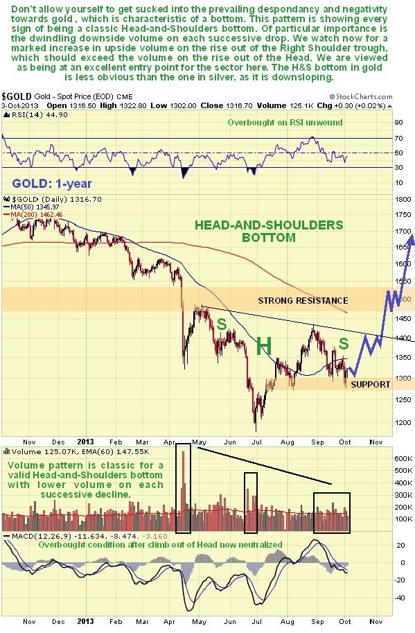 The reason for posting a new Gold Market update at this juncture is that we appear to be at an optimum “buy spot”, for gold, silver and Precious Metals ETFs and stocks, as both gold and silver have dropped back in recent weeks to mark out the Right Shoulder low of what is believed to be a large Head-and-Shoulders bottom.