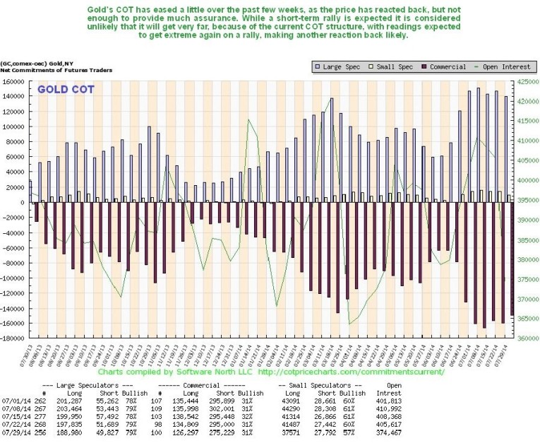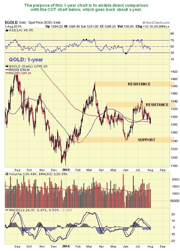 The 1-year chart for gold is shown below for the purposes of comparing it to the COT chart immediately below it…