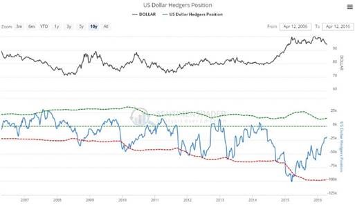 The latest dollar Hedgers chart, while not exactly raving bullish, is looking a whole lot better than it did a year ago, and certainly indicates that there is scope for a significant dollar rally here.