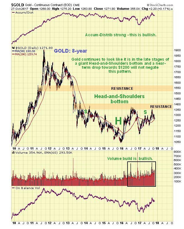Where were we? – Oh yes, gold. Short to medium-term outlook down to $1200 - $1215 area as dollar rally plays out, then turning up to break out of the giant base pattern shown on the 8-year chart above as the dollar rolls over and tips into a severe and possibly terminal bearmarket as the era of dollar dominance finally comes to an end.