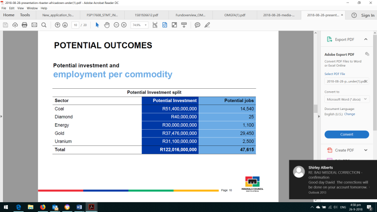 Roger Baxter, the Minerals Council CEO, recently presented at the Africa Down Under conference in Perth, Australia. (By the way the long standing Chamber of Mines has rebranded itself as the Mineral Council South Africa).