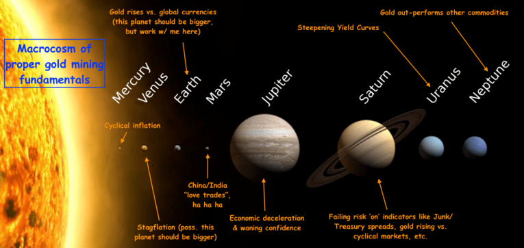 What matters is our Macrocosm, which I have not presented in a long time but which is proven once again in the current environment to be a good way to view the macro fundamentals not only for gold, but especially for gold stocks, which leverage gold’s standing within the macro. Generally speaking, the larger the planet the more important the fundamental consideration.