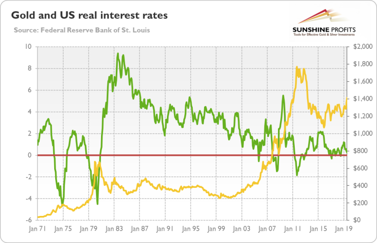 But why is the fall of real interest rates into negative territory so important? Well, more generally, everything that relates to the real interest rates should be of great interest to precious metals investors. This is because of the very strong negative correlations between the real interest rates and gold. It means that the gold prices tend to move in the opposite direction to real interest rates, as it is illustrated by the chart below.