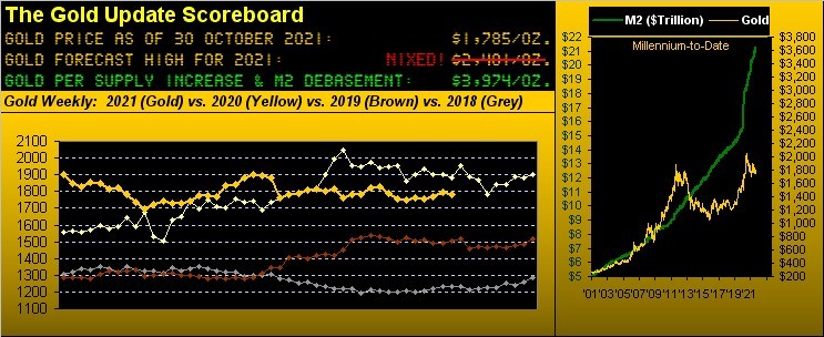 So with another month in the books we go to our graphic of the Gold Structure from some 11 years ago-to-date. That wee rightmost bar is the entirety of Gold's October: by percentage between the low and high the narrowest month since May 2019. And moreover from the "Déjà Vu Dept." 'tis really the battle all over again for The Northern Front as we saw nearly a decade ago, the StateSide Money Supply then essentially half what 'tis today. As our great and good colleague here wrote earlier this morning: "I have no words!!" ... (which is why yours truly pens The Gold Update):